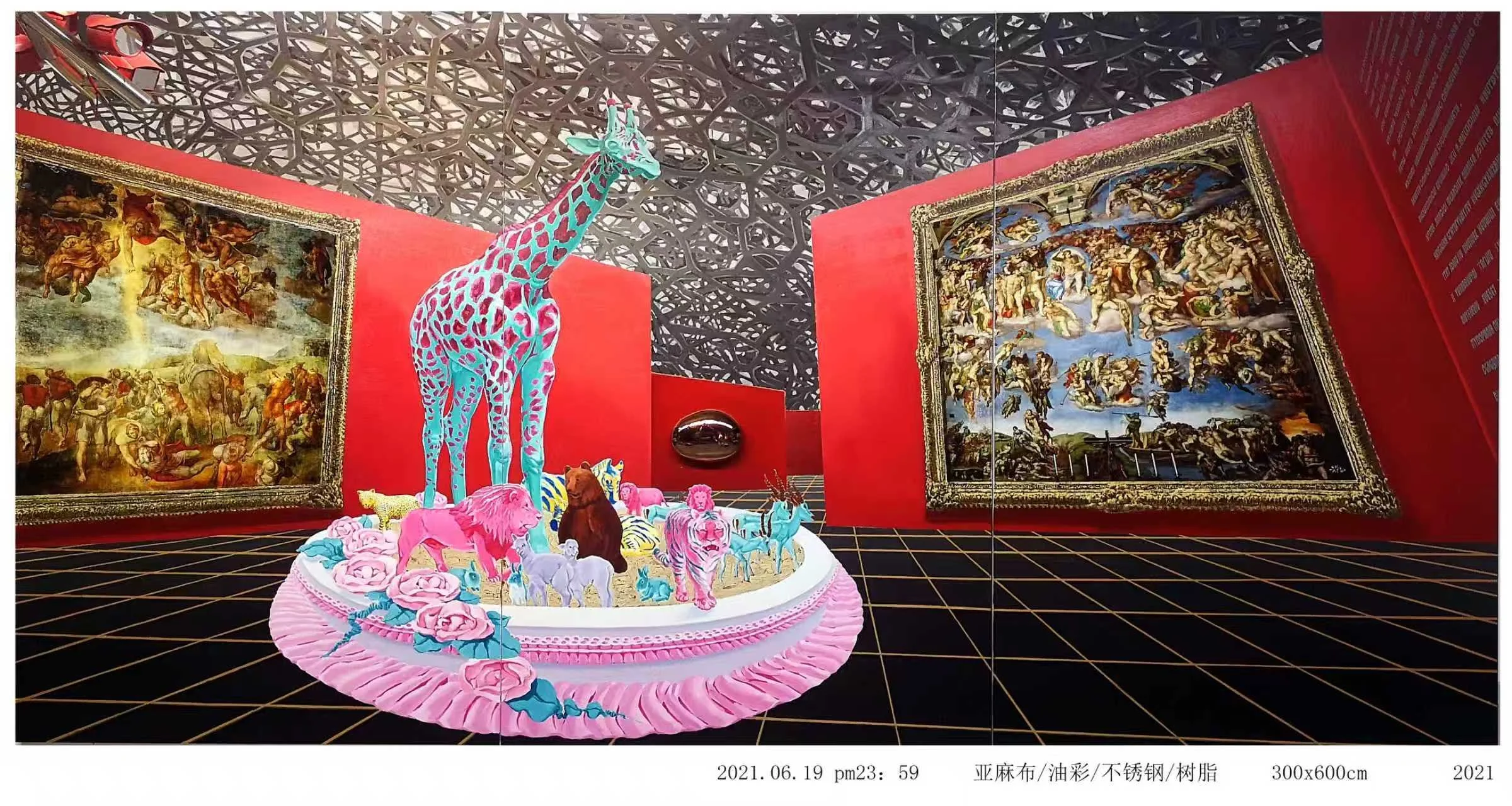 Li Jingfang /2020 / 300× 600 cm/ Linen, oil paint, stainless steel, resin